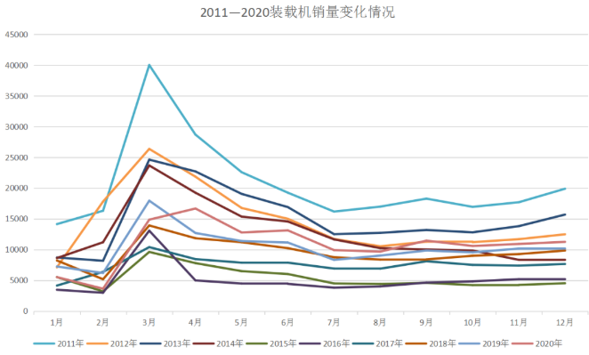 虽是有所增长,但相对于跨越式增长的挖掘机和其他品类,装载机的增长实在有些黯淡,甚至与之前几年的销量进行纵向对比,装载机今年的成绩也是表现平平,不仅远远低于巅峰期2011年的24万台,甚至连衰落期2014年的15万都不到。